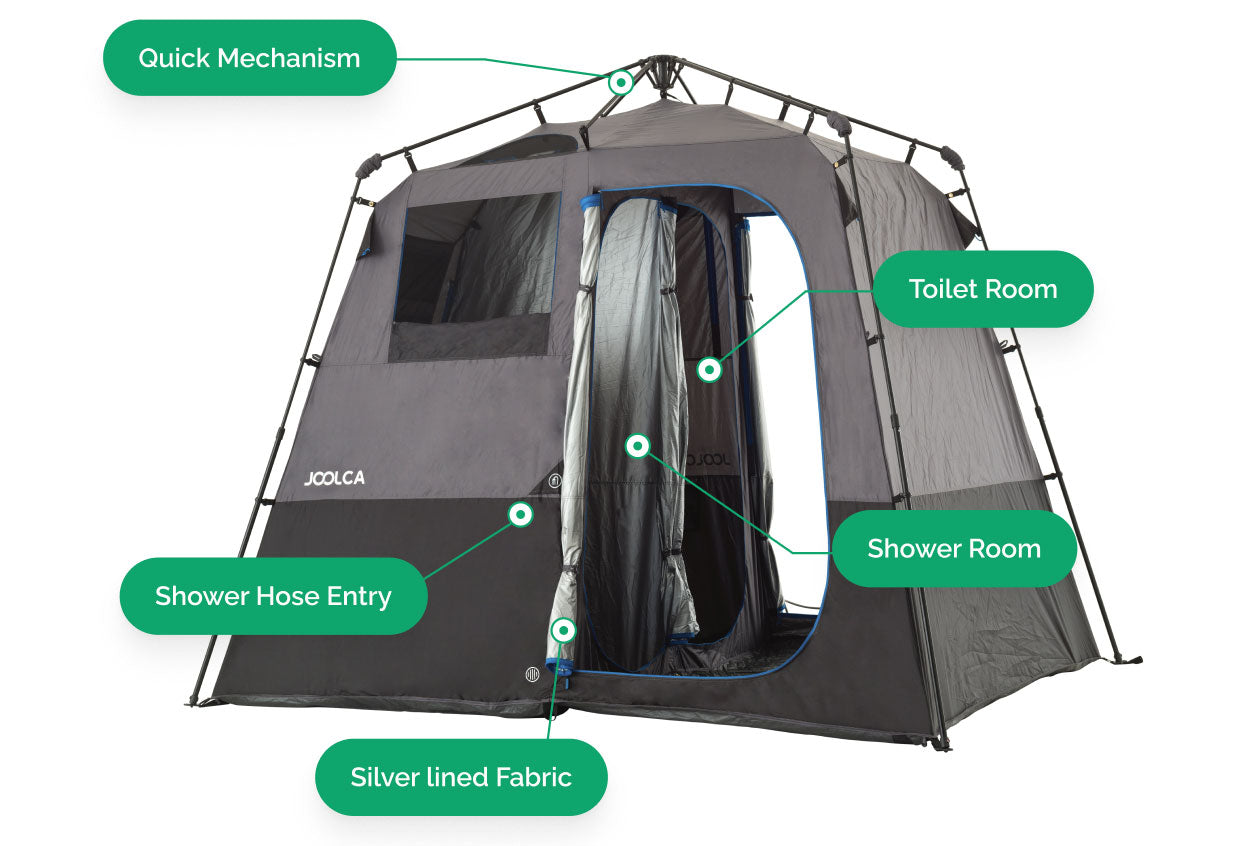 This joolca triple shower/toilet changing room is the best peace of camping equipment we have purchased it’s so much better with this tent we love it and so easy to put up and pull down in just 1minute it’s a must for campers 5* from us.