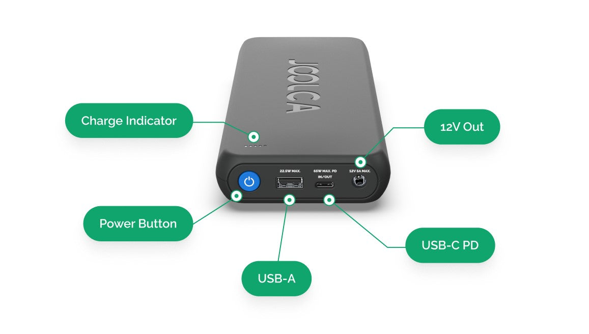- USB-C PD port (input/output): 5V, 9V, 12V, 15V, 20V up to 3A (60W max), regulated
